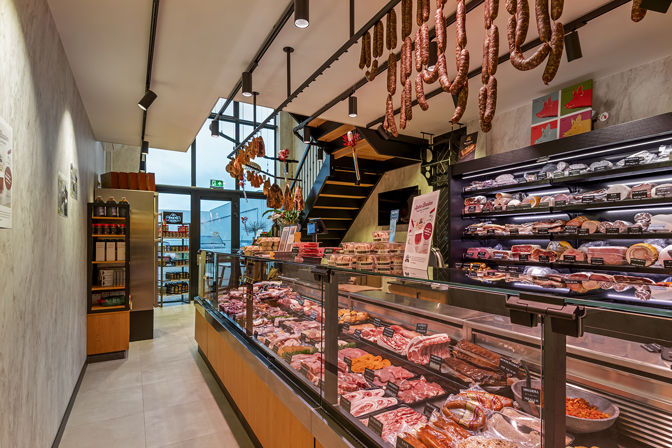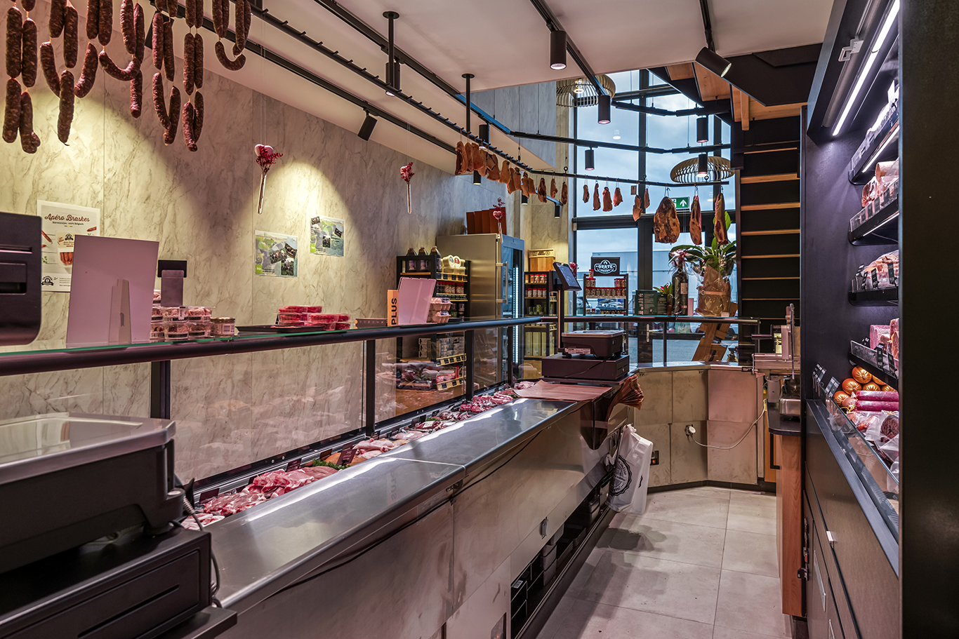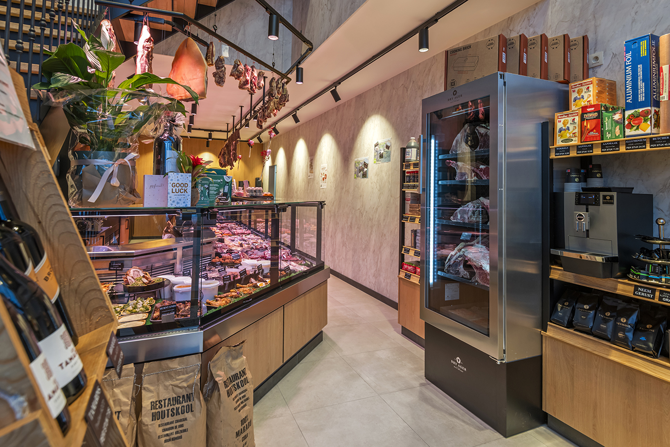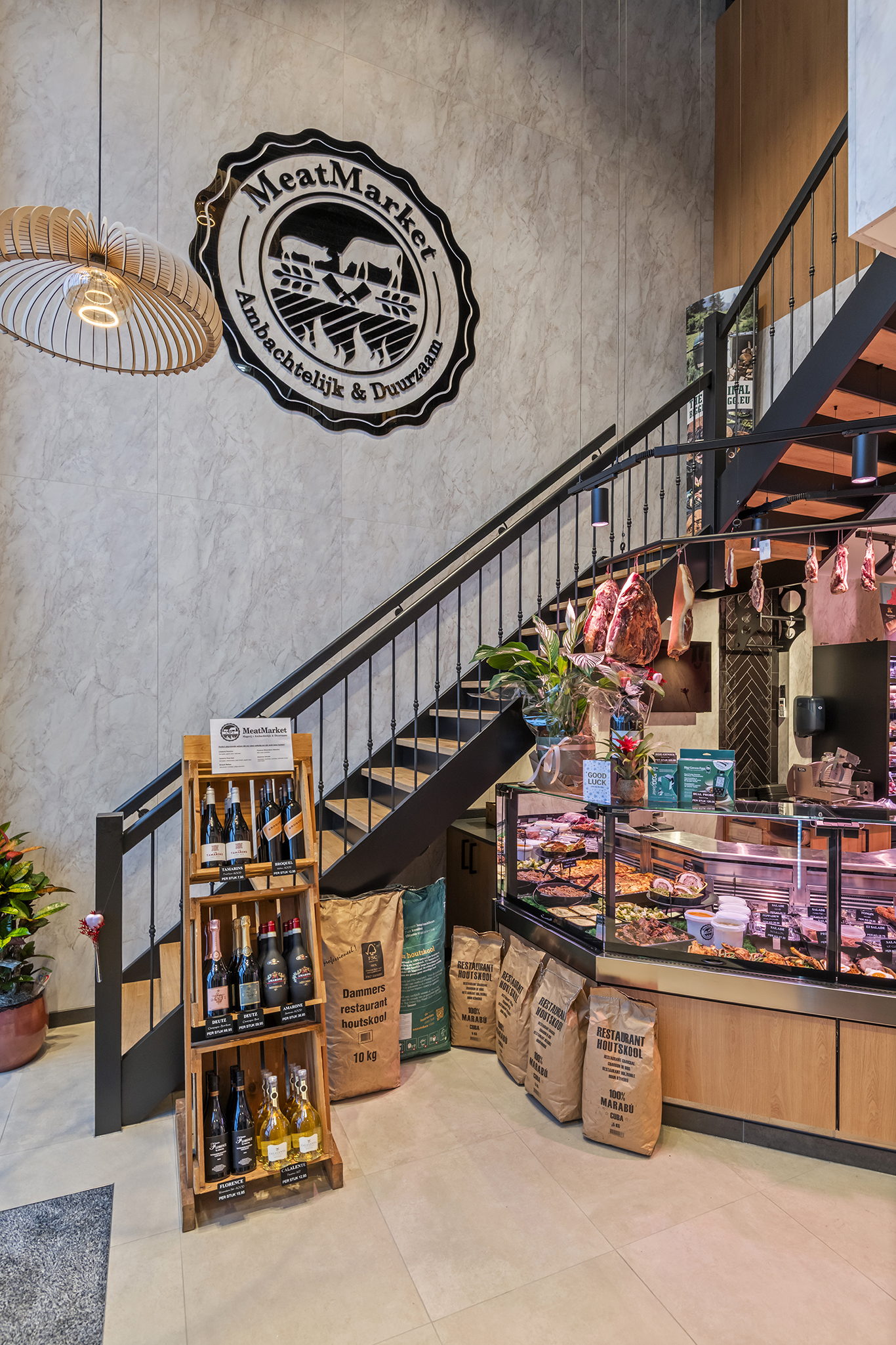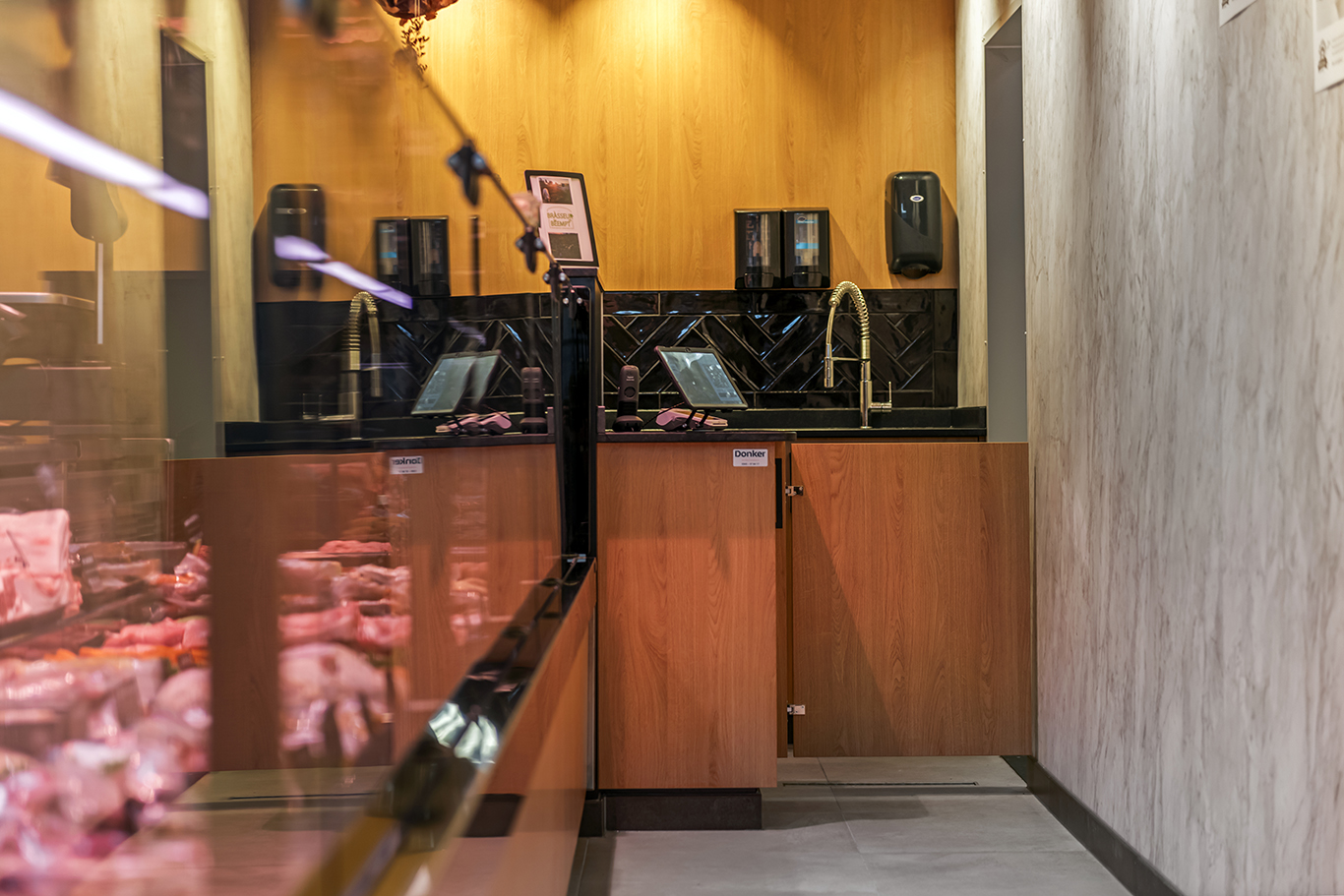 De verbouwing heeft geleid tot een compleet vernieuwde, volwaardige slagerij met een uitgebreid productaanbod. Voor het interieur kozen we voor een krachtige en moderne uitstraling: