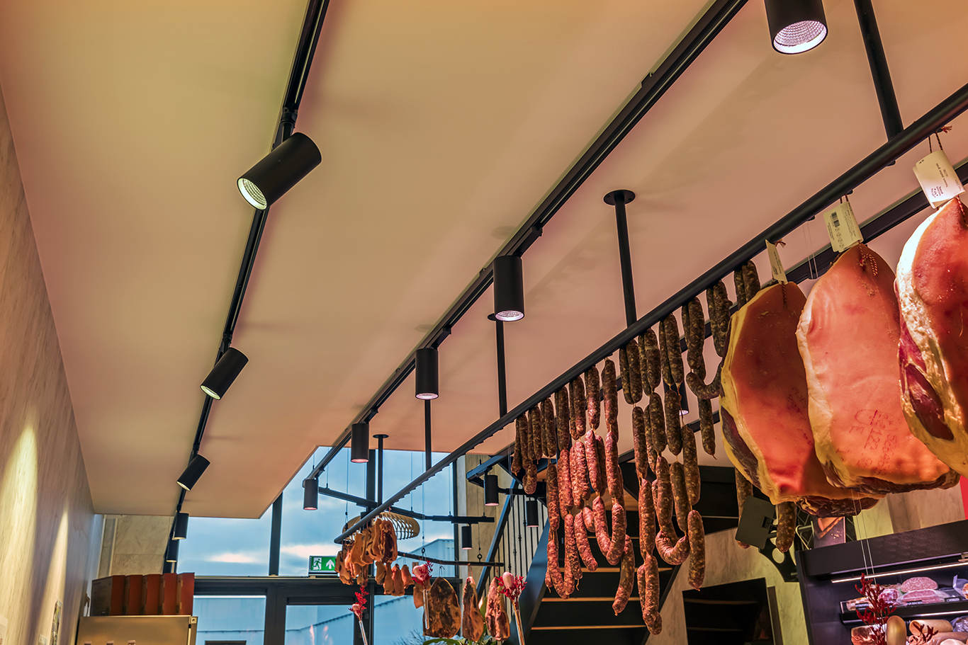 Een extra uitdaging vormde het hoogteverschil in het plafond: deels 7,5 meter hoog en deels 2,8 meter. De verlichting moest op de juiste wijze doorlopen voor een strak en harmonieus geheel. Dat vergde nauwkeurig meetwerk en technische precisie – precies waar wij sterk in zijn.