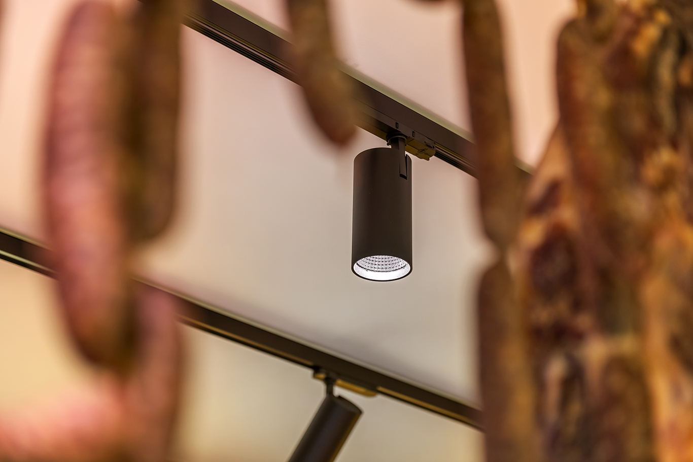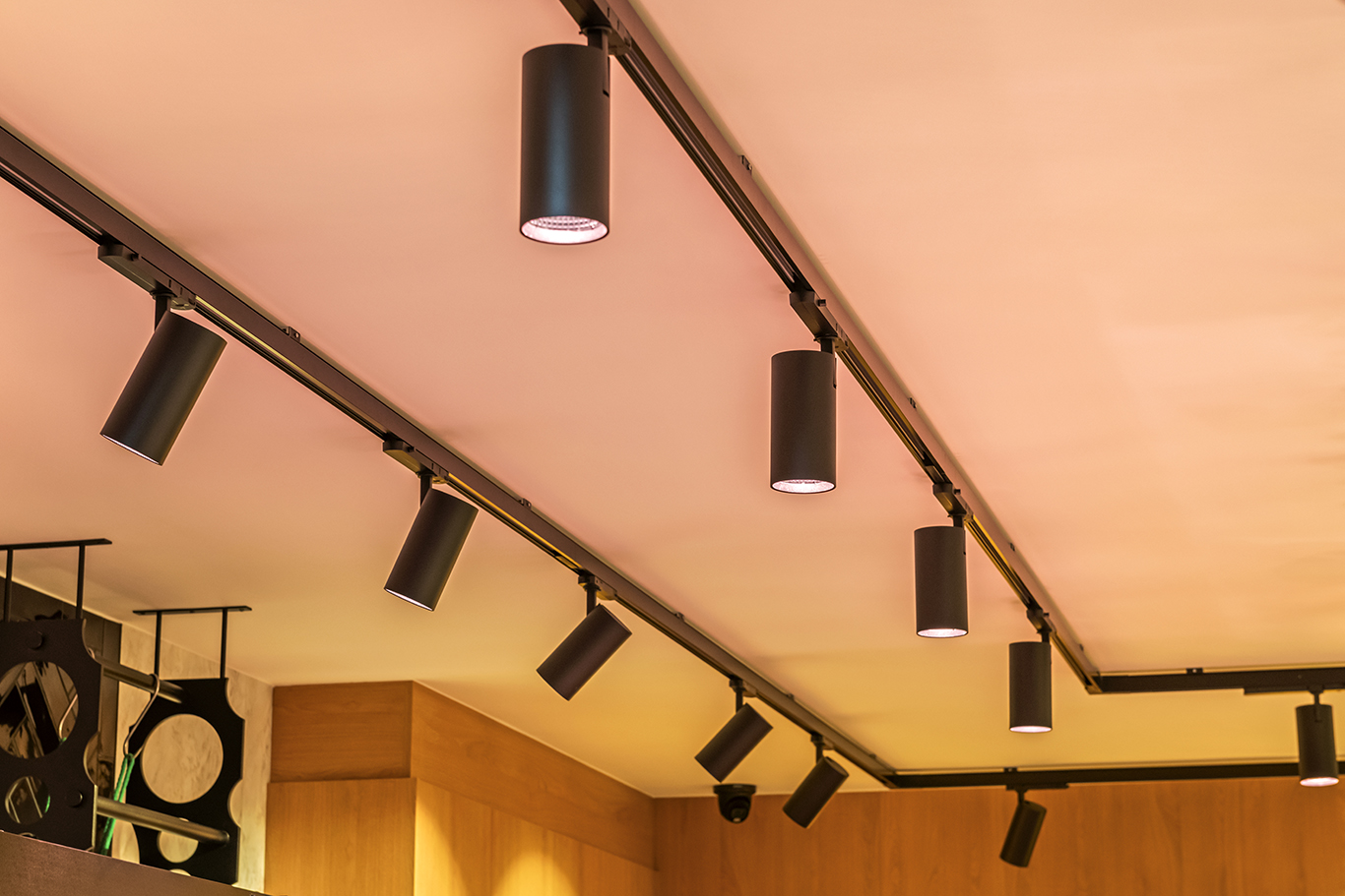 - Spanningsrails met opbouwspots, in 3 lichtkleuren en lichtsterktes.