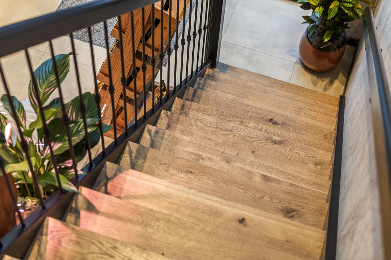 Samen met Koops en de familie Peeters zaten we vanaf het eerste moment op één lijn. Eén van de grootste uitdagingen? De nieuwe trap. De verdieping bevindt zich maar liefst 4,5 meter boven de begane grond, dus veiligheid, comfort en uitstraling moesten perfect samenkomen.